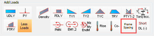 Click on More Loads button to see all of the loading types and click button to add a new frame spacing to the list.