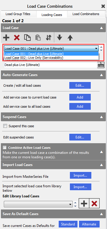 In this tab, we have the facilities to manage loading cases and define titles for them. However, for this example, we will retain the default loading cases and titles.