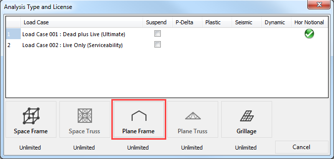 The file will be saved automatically and the Analysis Type and License toolbar will now appear.