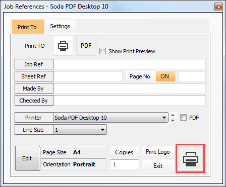 The Job Reference text boxes enable you to edit the job reference details that will appear in the printout.