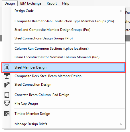 From the Design file menu, select the Steel Member Design option and select all the members in the frame, by windowing them.