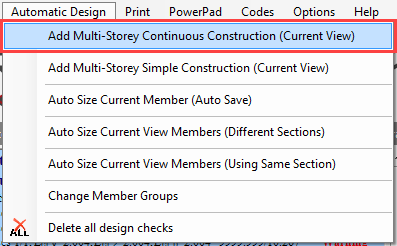 From the main Automatic Design menu, select Add Multi-Storey Continuous Construction (Current View).