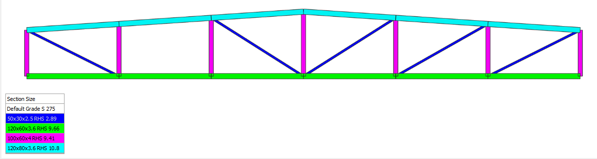Confirm that you wish to use the RHS sections and steel grade shown. The members are automatically sized for the lightest section that satisfies all 6 members.