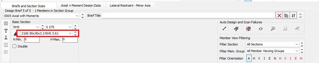 The Apply-to mode ( ) (bottom left of frame graphics window) should be automatically selected. If not, select this mode. Apply the brief to one of the failing members by clicking on it.