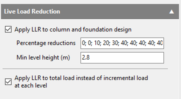 - Tick the ‘Apply LLR to column and foundation design’ option