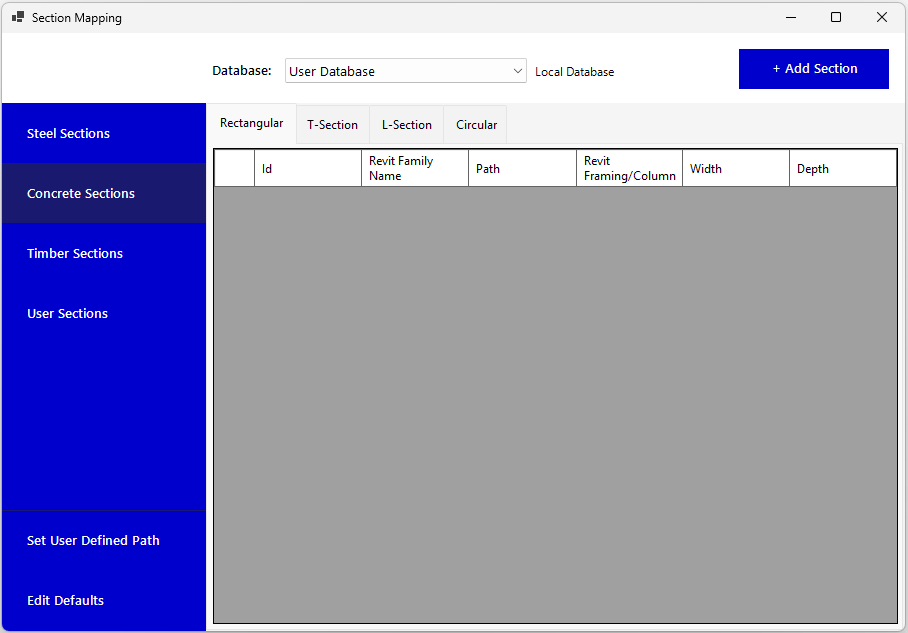 The MasterSeries Revit Link Manager comes with two databases for section mapping: