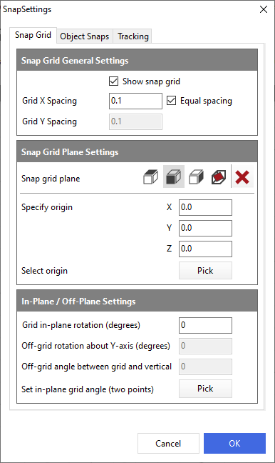 Snap Grid Plane Settings
