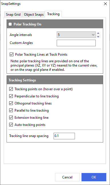 Snap settings – snap grid, object snaps and tracking