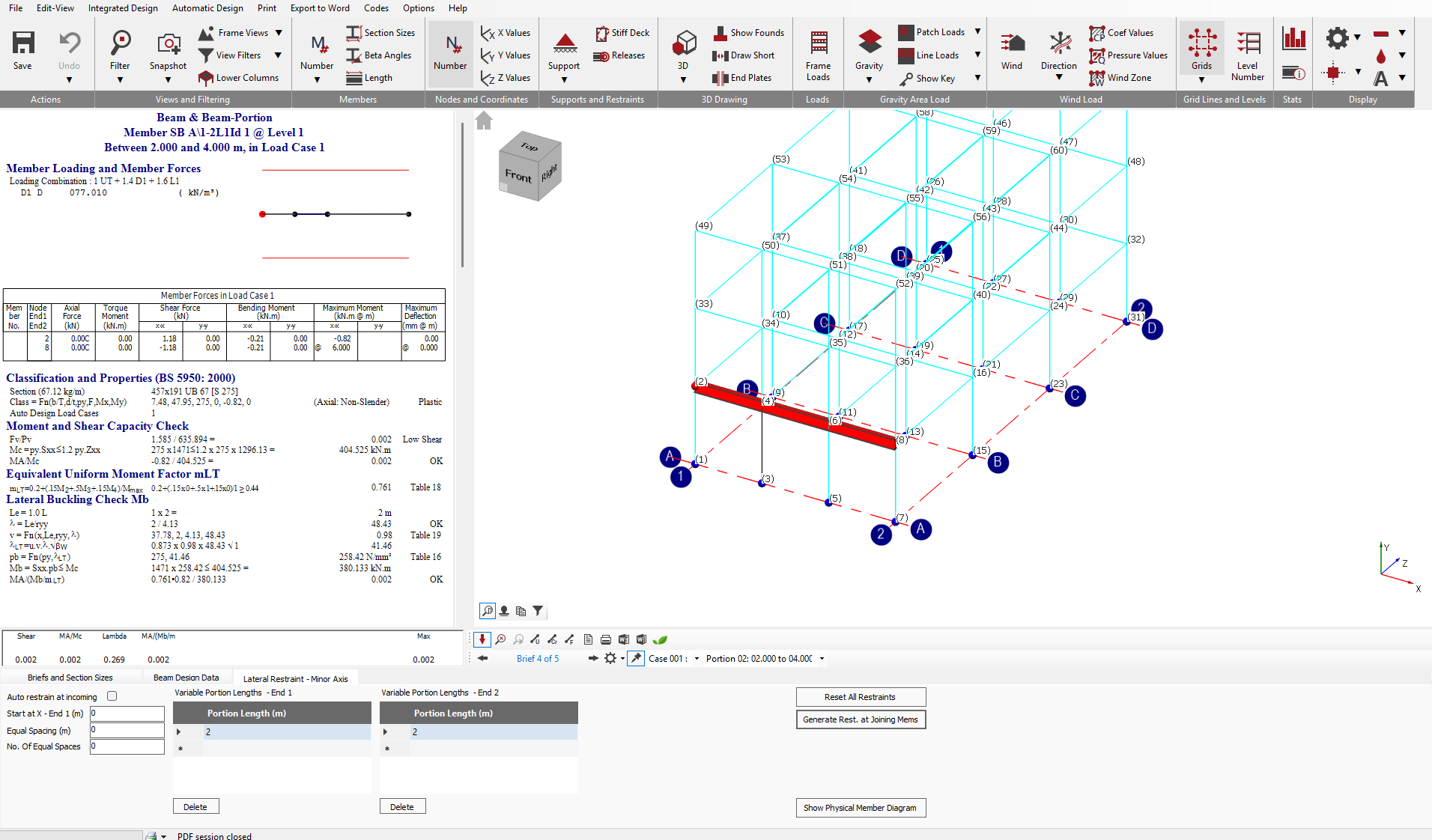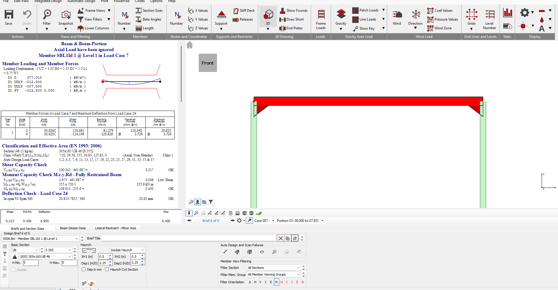 Once a Beam and Beam-Portion design brief is applied to a member, the basic screen layout is as follows.