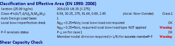 - A warning will be issued if this condition is met but the local bow imperfection loads have not been applied. For instance, the software might indicate that for the minor axis, NEd is greater than 0.25 * Ncr, and warn that local bow loads haven't been applied.