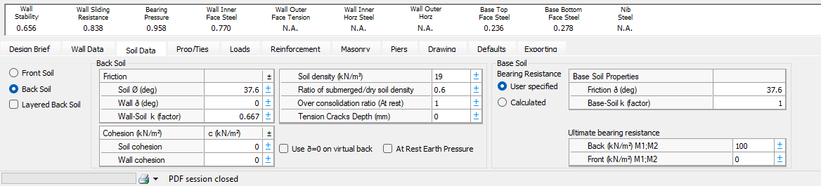 - You can also define the front and back soil dimensions and slopes, and the water table level.