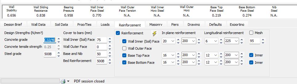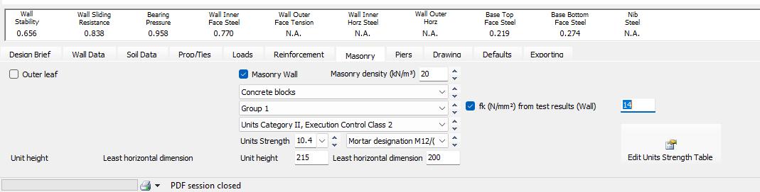 Ensure the necessary settings are applied for a reinforced hollow block wall system. The defaults added from the database will provide the block strength (FK values), dimensions, and unit strength details for the chosen Stepoc block.