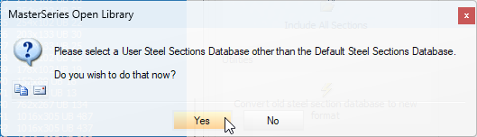 Standard user sections are managed within the User Steel Section Database, which is located in the Open Library. You can access the Open Library via the Utilities tab on the MasterSeries start-up screen.