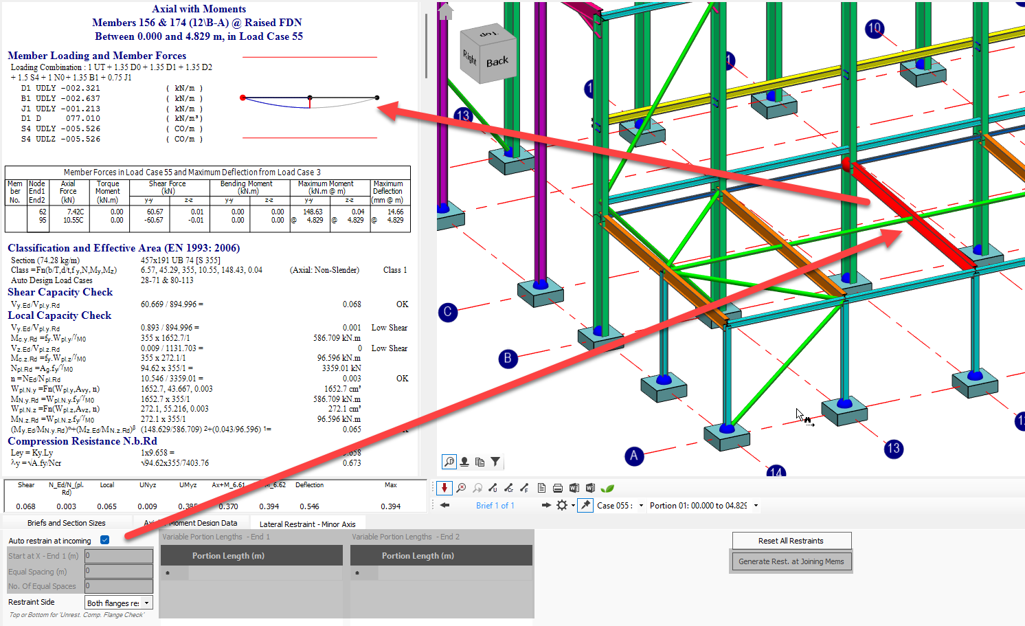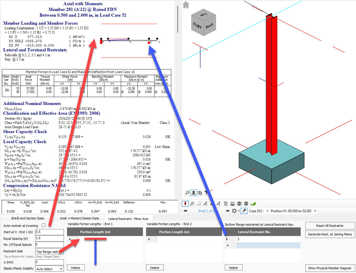 Reference to the restraint number can be seen on the local moment capacity diagram on the calculation pane .