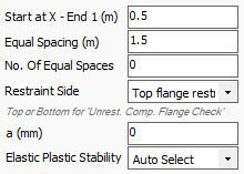 - Plastic Stability: Override to force plastic stability checks. In unrestrained compression flange plastic stability checks, design requirements for buckling stability are perform using stable length calculations as per Appendix G in BS 5950 and Annex BB.3 In EC3. The section must be greater than 0.85 local capacity utilisation and be < class 3 for this override to take effect.