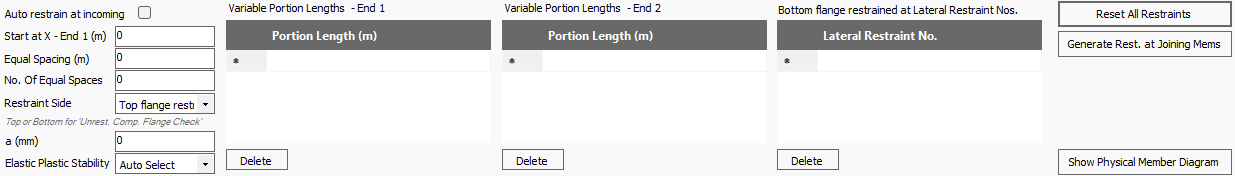 Where a member has other members framing into it, for example, a primary beam supporting secondary beams, the portions can be created automatically at the position of the connecting members. This option will define a lateral restraint where another member is attached to the beam under consideration.