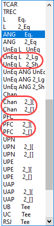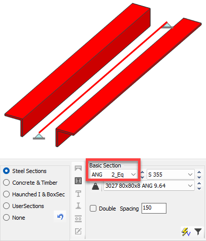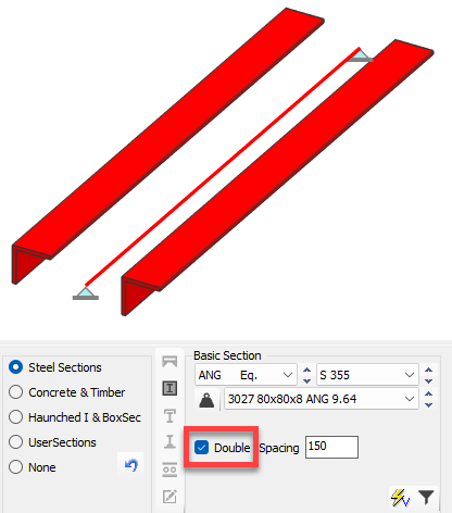 Back-to-back or toe-to-toe arrangements (e.g. double angles or channels) are defined as section types rather than duplicated members.
