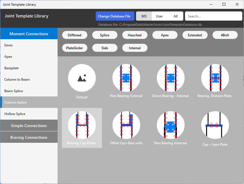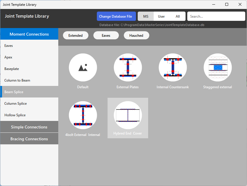 The design of rigid moment resisting connections is carried out in accordance with the joint model and design methodology as given in the SCI Green Book publications. The range of connection types covered by the MasterKey: Moment Connections module are: