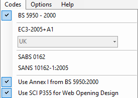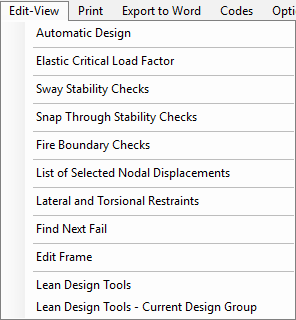 The main menus at the top of the screen will aid with the design of the steel sections and other additional checks, viewing and printing of the output, selection of design codes and some additional options as outlined below.