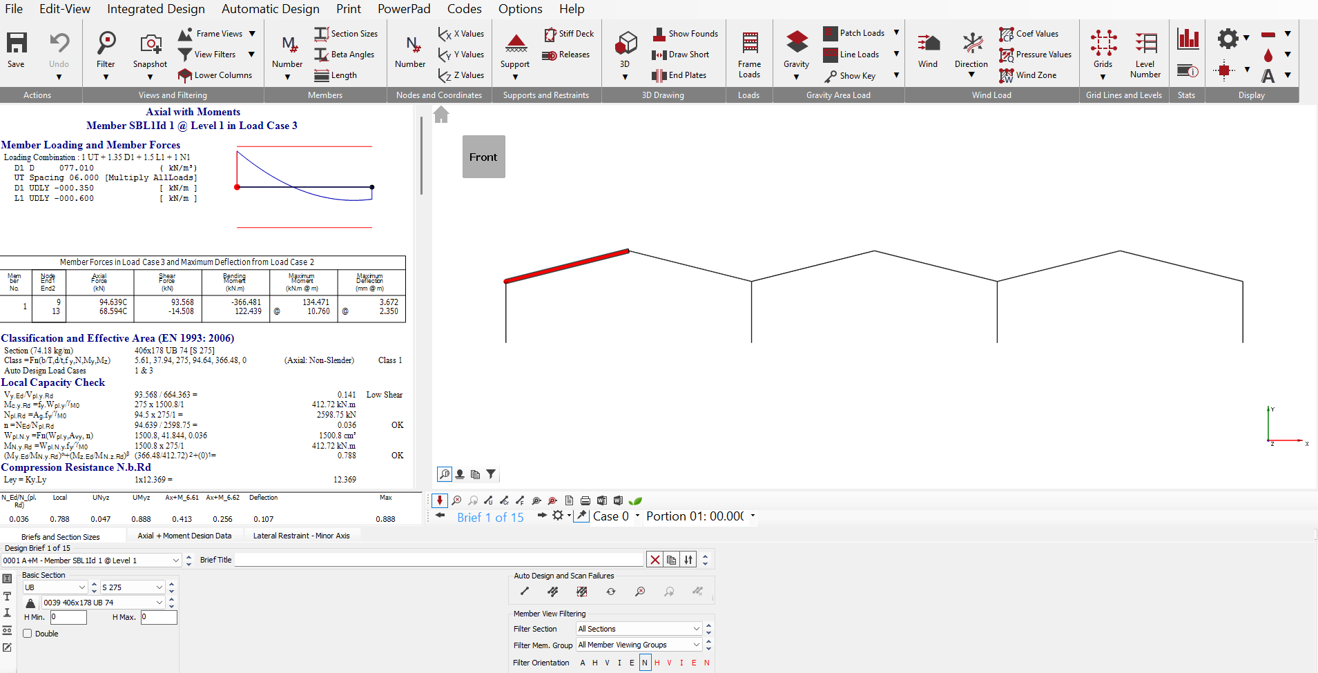 When resizing other members it is important that any plastic hinges formed may redistribute additional moment to that moment. Caution must therefore be taken not to over utilise the section based on the moments before elastic-plastic analysis is carried out.