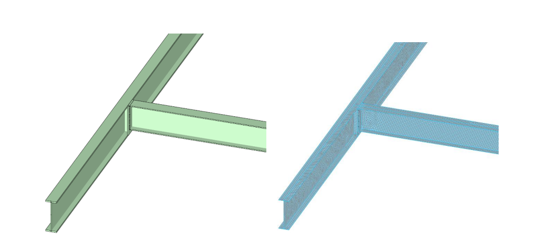 For the case where there is a toe plate connected supported beam either side of the supporting beam at the same location, this creates a ‘through beam’ system, whereby significant hogging is possible. In our FEM this was demonstrated as being approximately 40% of the sagging moment, with smaller end plate thickness relieving this value. This hogging moment is also relieved by the deflection of the supporting beam.