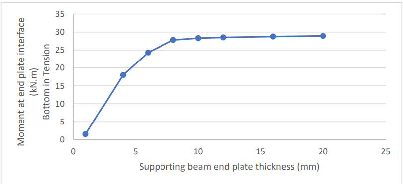 Figure 4. Effect of supporting beam end plate thickness on moment at the plate interface.