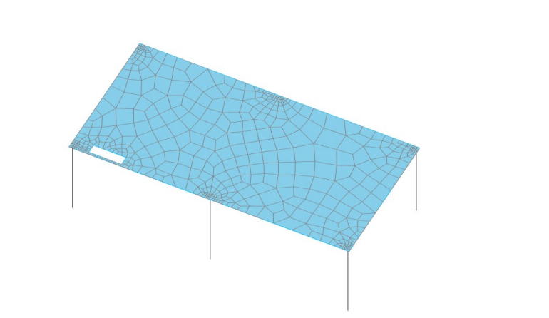 - Review the positioning of openings within a surface where the boundary of the opening is in close proximity to the boundary of the FE surface. Where openings are extremely close to the slab, consideration should be given to eliminating the very thin strip of FE surface between the opening and surface edge.