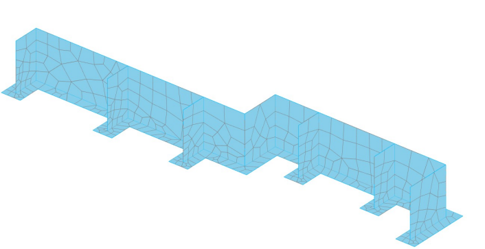 Fig. 8 Base slab mesh wrapping round the intersecting (vertical) surfaces