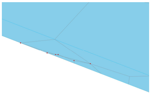 - Consider simplifying the surface geometry in areas where the boundary forms a sharp point (boundaries form an acute angle) or where curves have been modelled with many short facetted members and so requires a large number of nodes in close proximity.