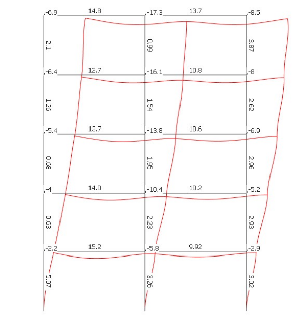 Diagram showing nodal displacements and in-member deflections in a multi-storey frame