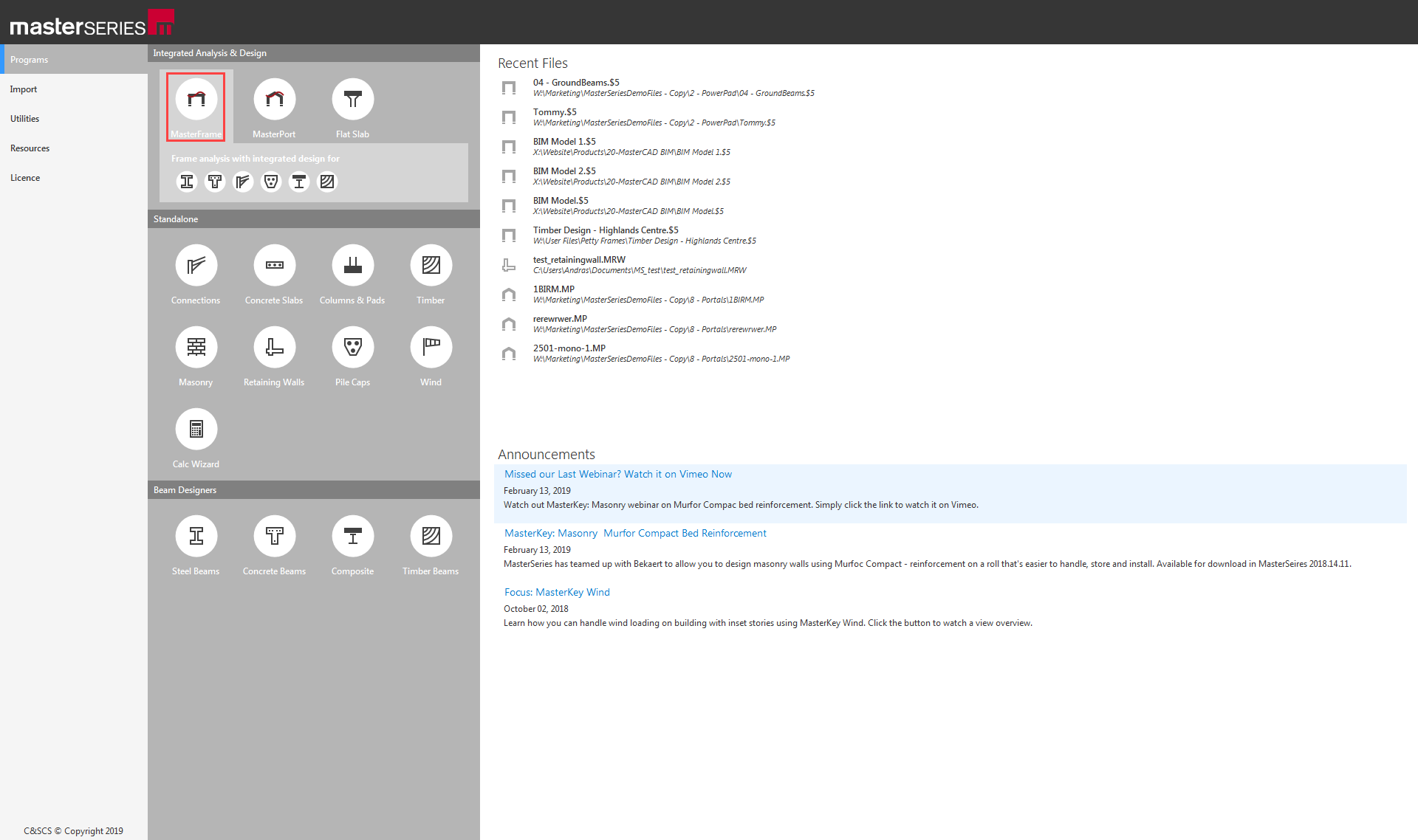 To start this tutorial, launch the main program of MasterSeries.