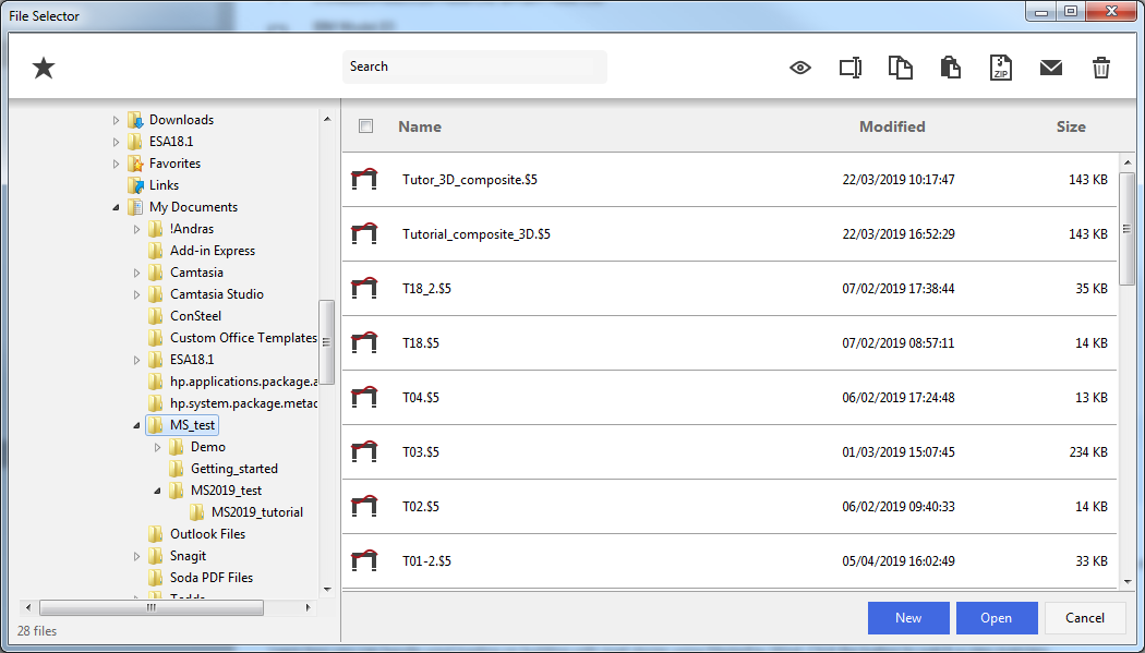 You can use the File Selector to navigate in your folder tree and to select, modify or delete your existing model files or create a new one.